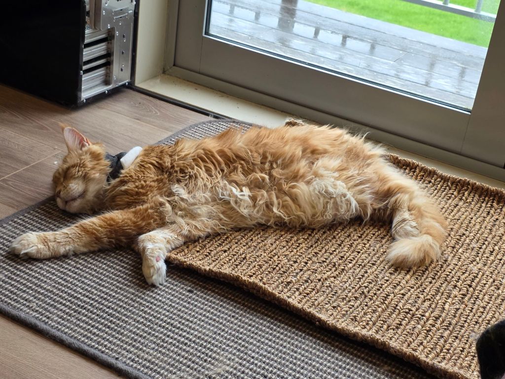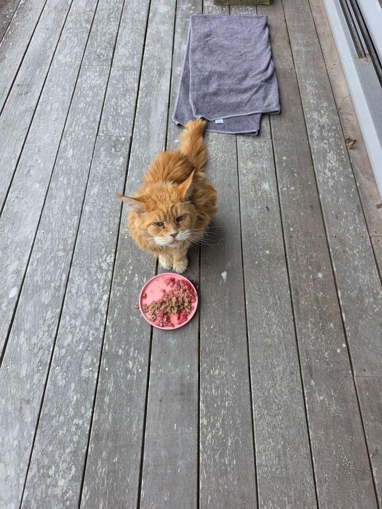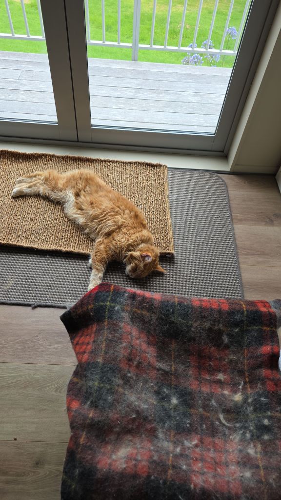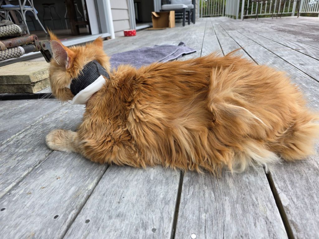 On the downside, he’s now inured to using a dirt box again, so we are weaning him off it slowly. He’s going out more and more, getting back to his old ways. Perhaps a bit slower and less confident, but hopefully that will improve with time.