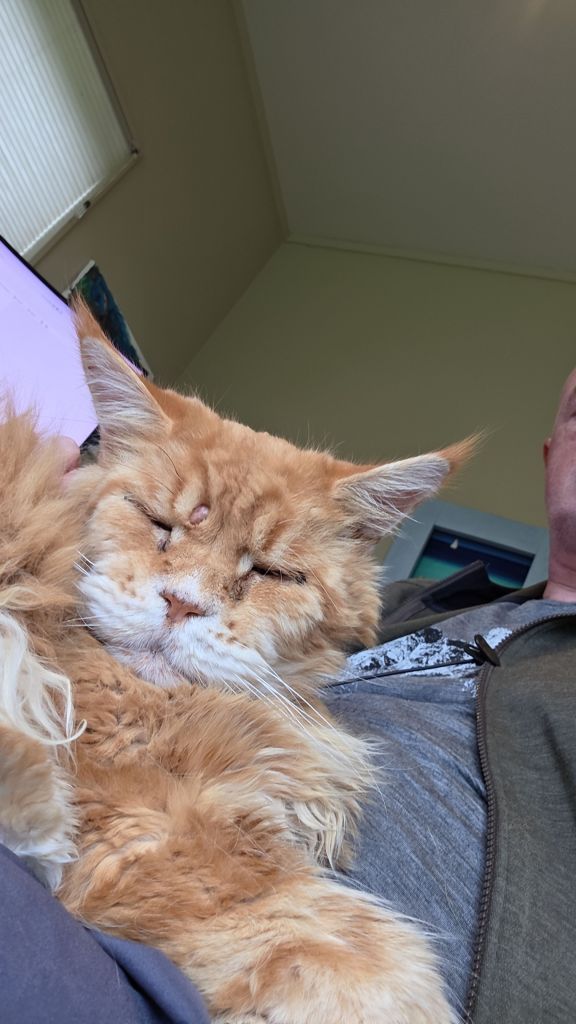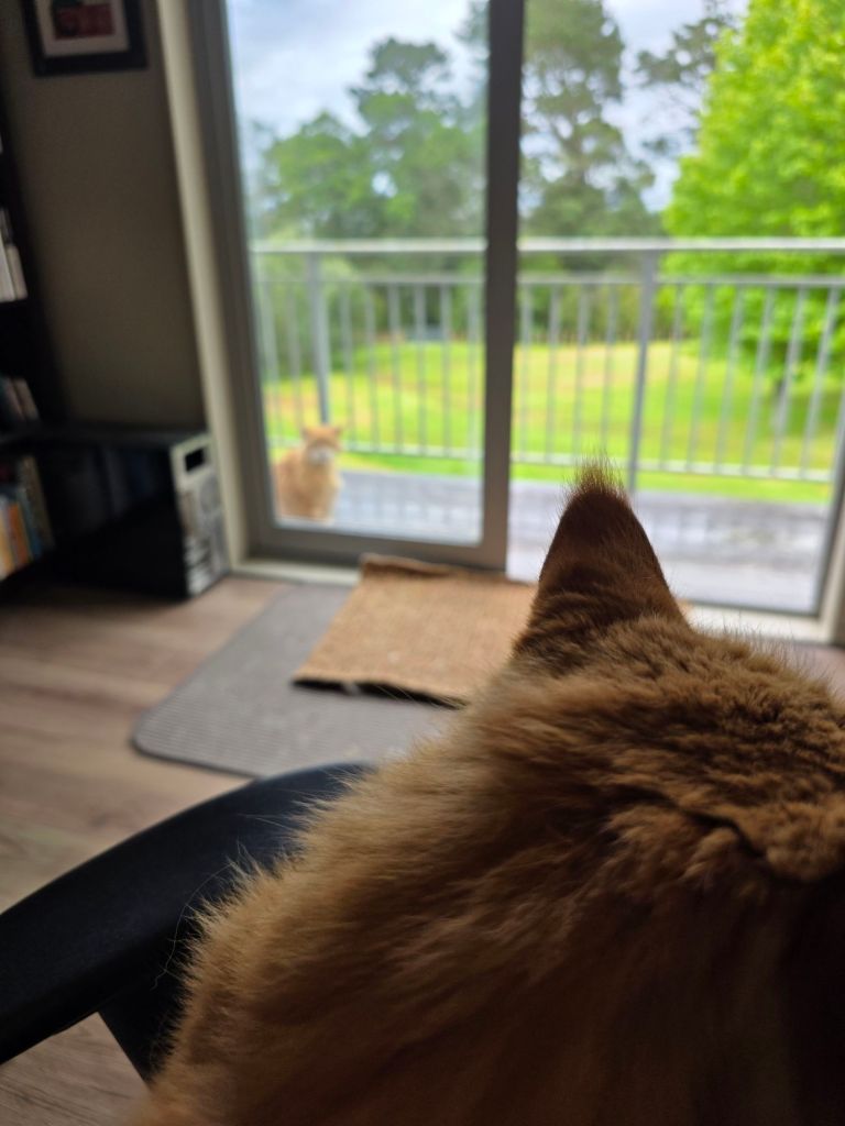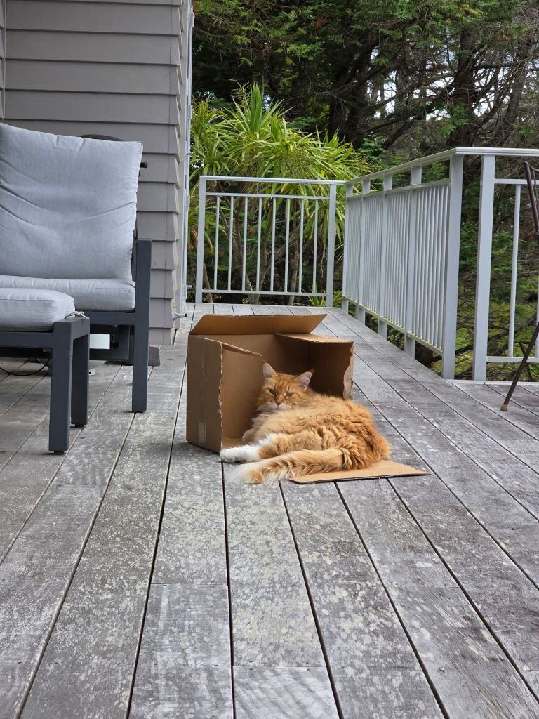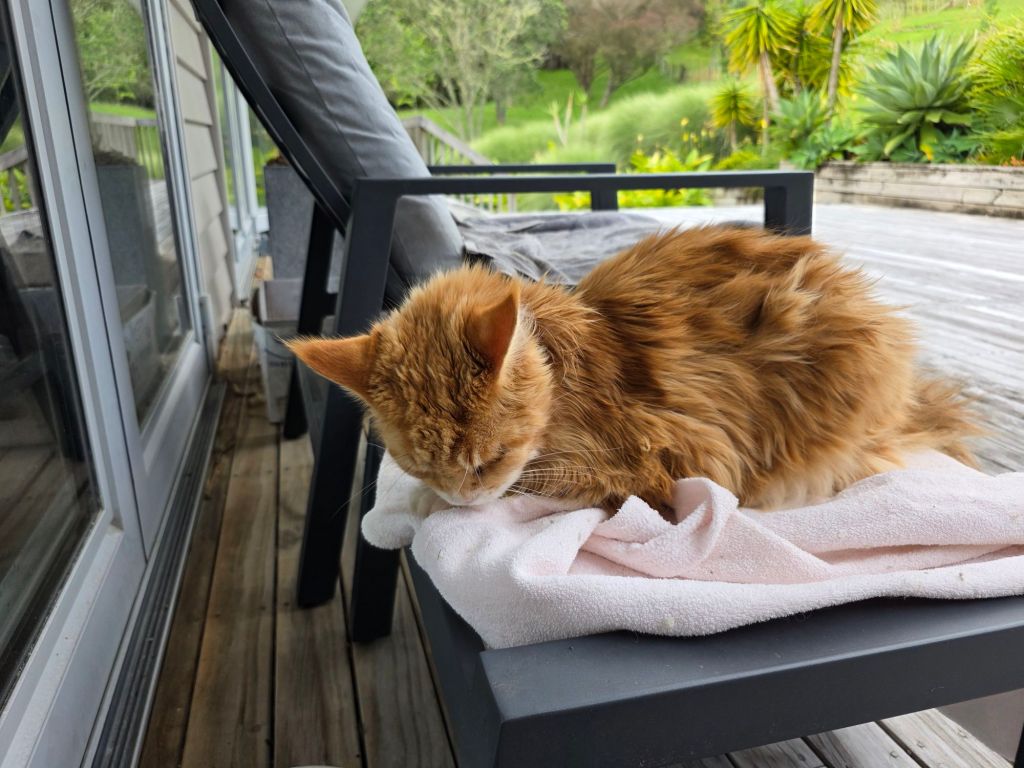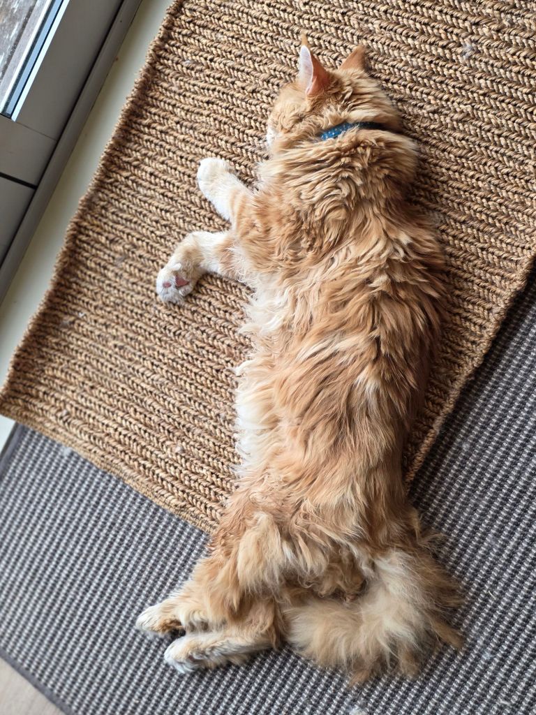 On the downside, he’s now inured to using a dirt box again, so we are weaning him off it slowly. He’s going out more and more, getting back to his old ways. Perhaps a bit slower and less confident, but hopefully that will improve with time.