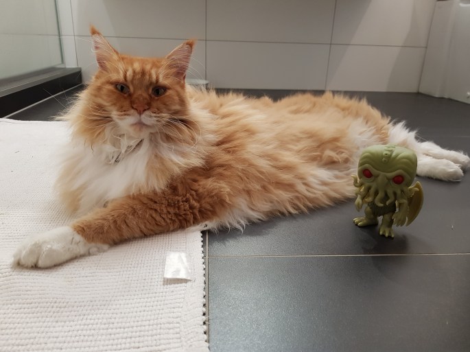 So it was nice that The Dread Cthulhu nipped round to borrow a cup of souls, and offered to pose next to her.
