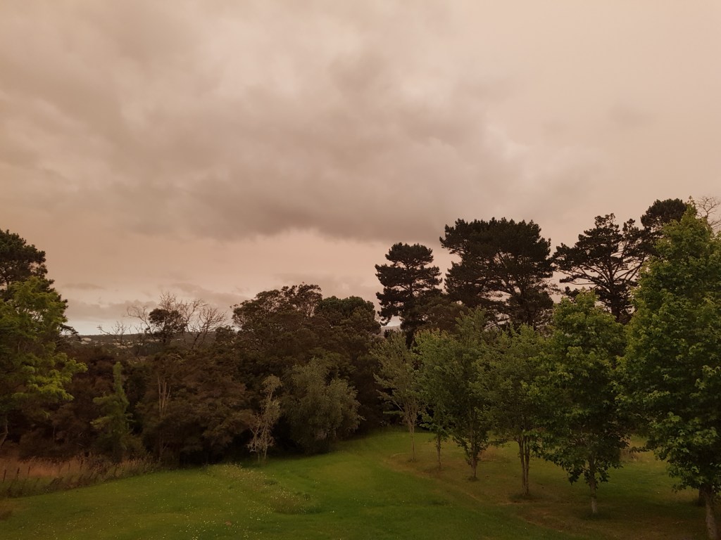 There’s a Westerly blowing the smoke from the Australian bush fires over New Zealand at the moment. The light is a very strange yellow colour. This picture doesn’t really do it justice.