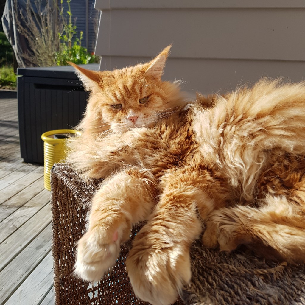 Sitting in one of his favourite spots. The sun is getting weaker as we move towards Winter but there’s still some heat for him.