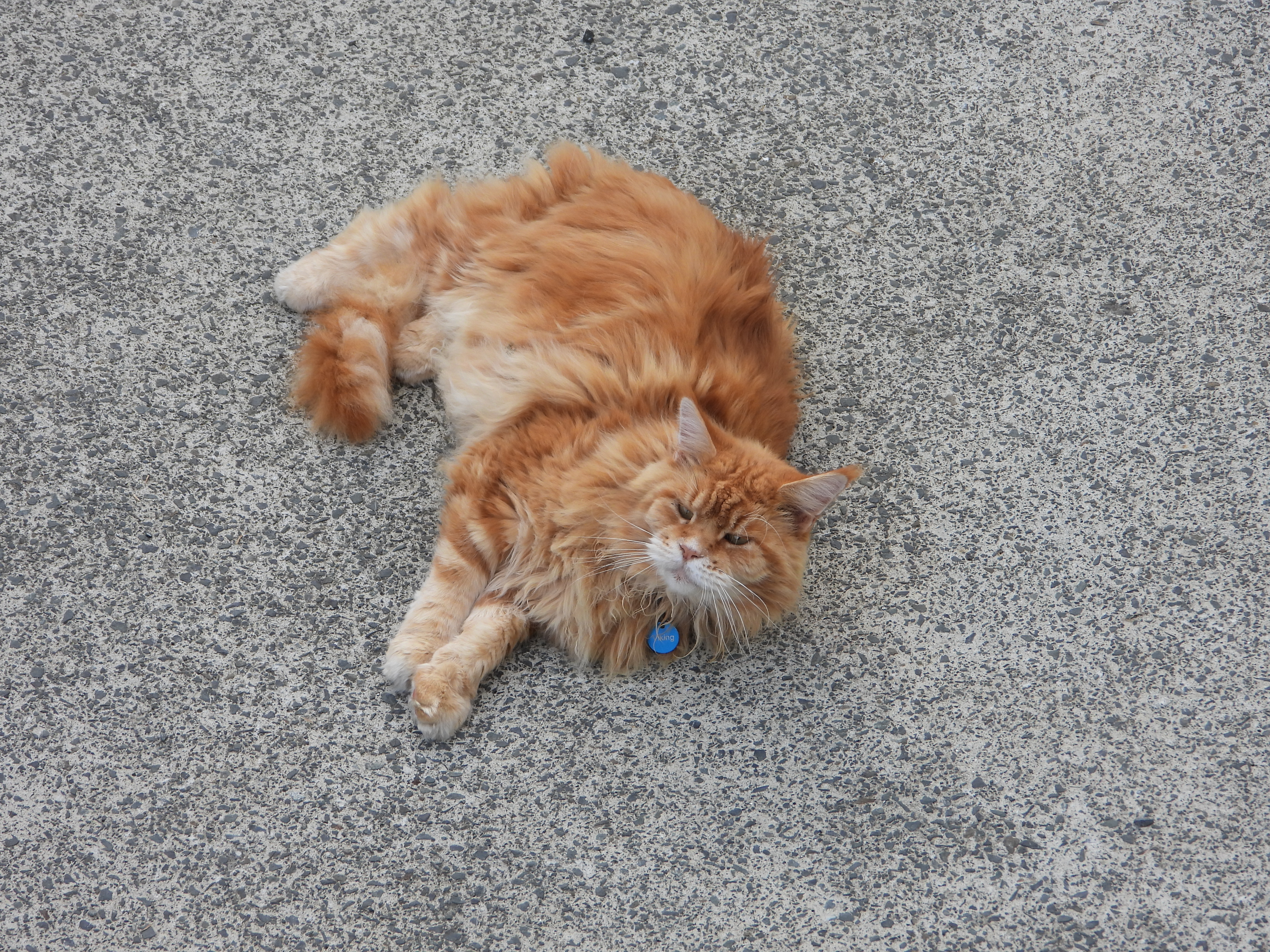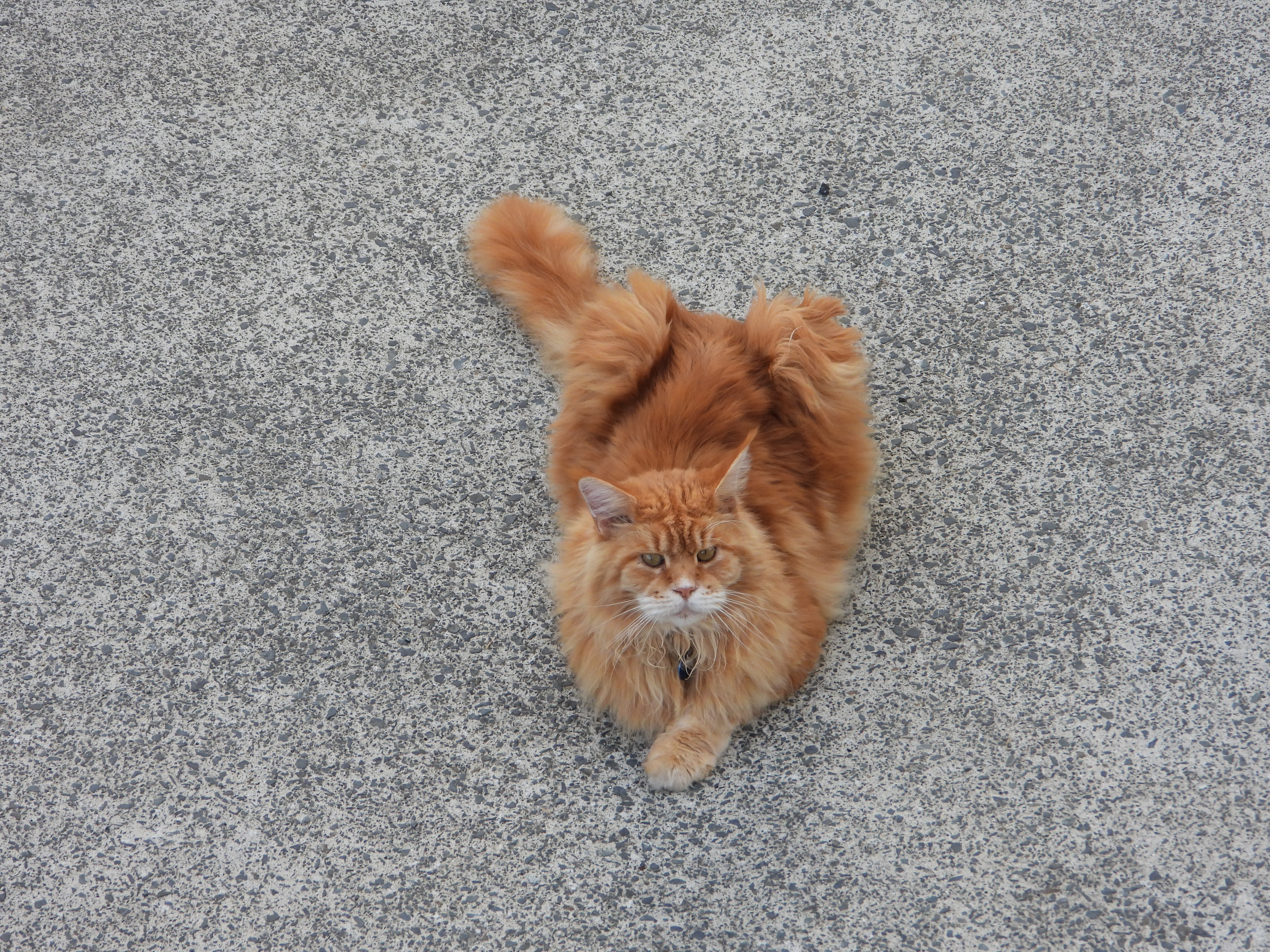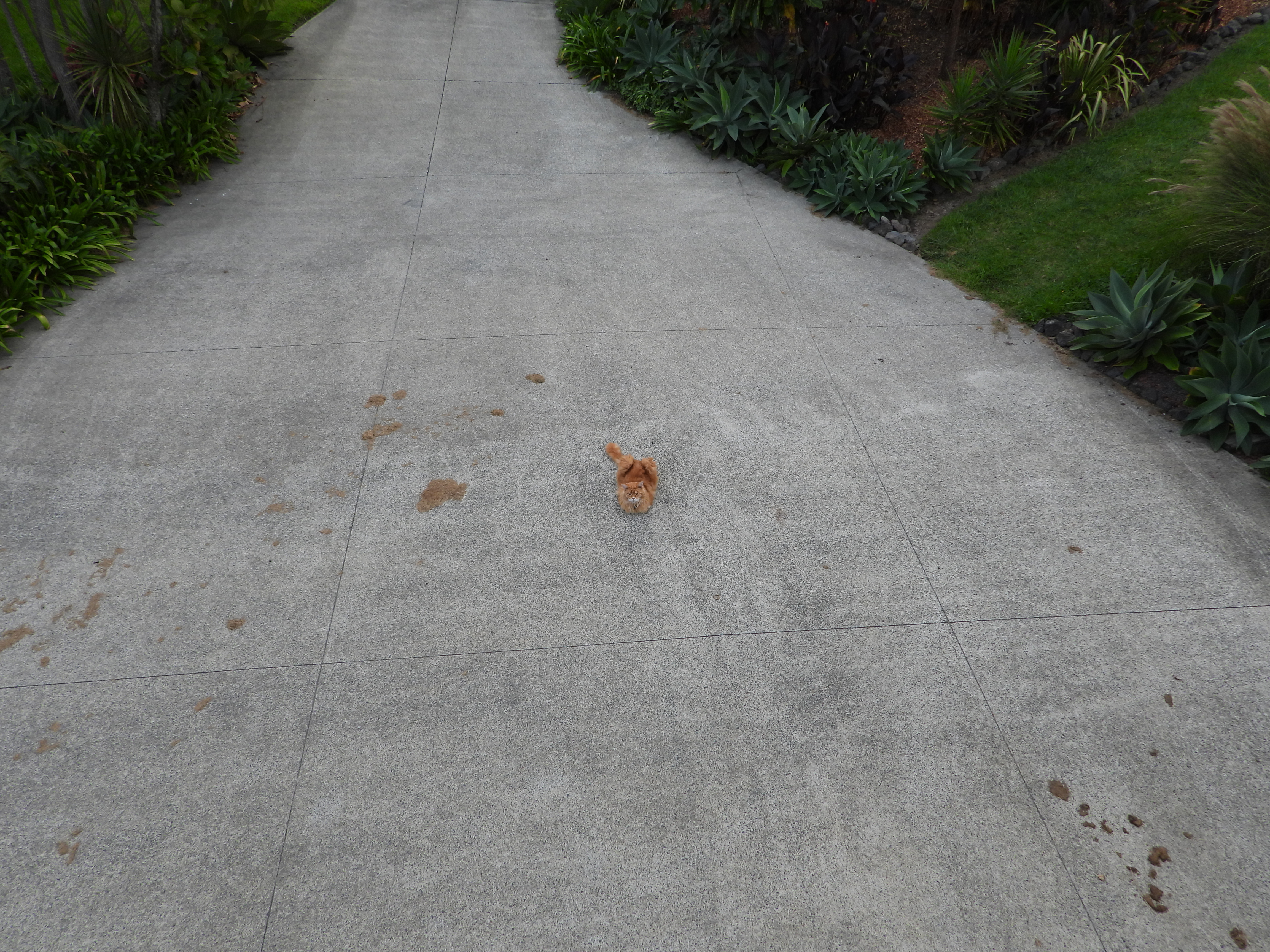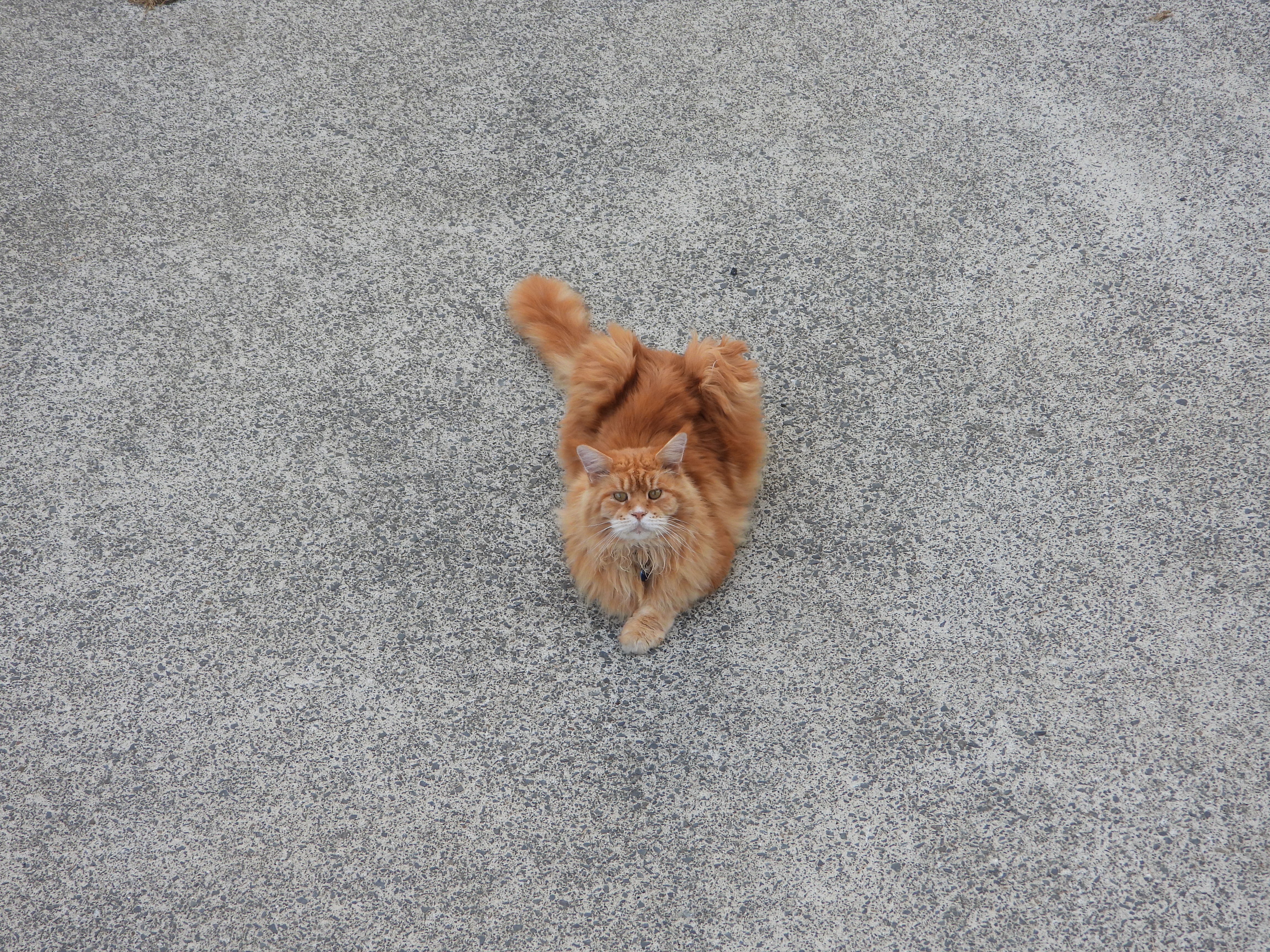 He took the opportunity this afternoon to be all ginger and tough on the driveway.