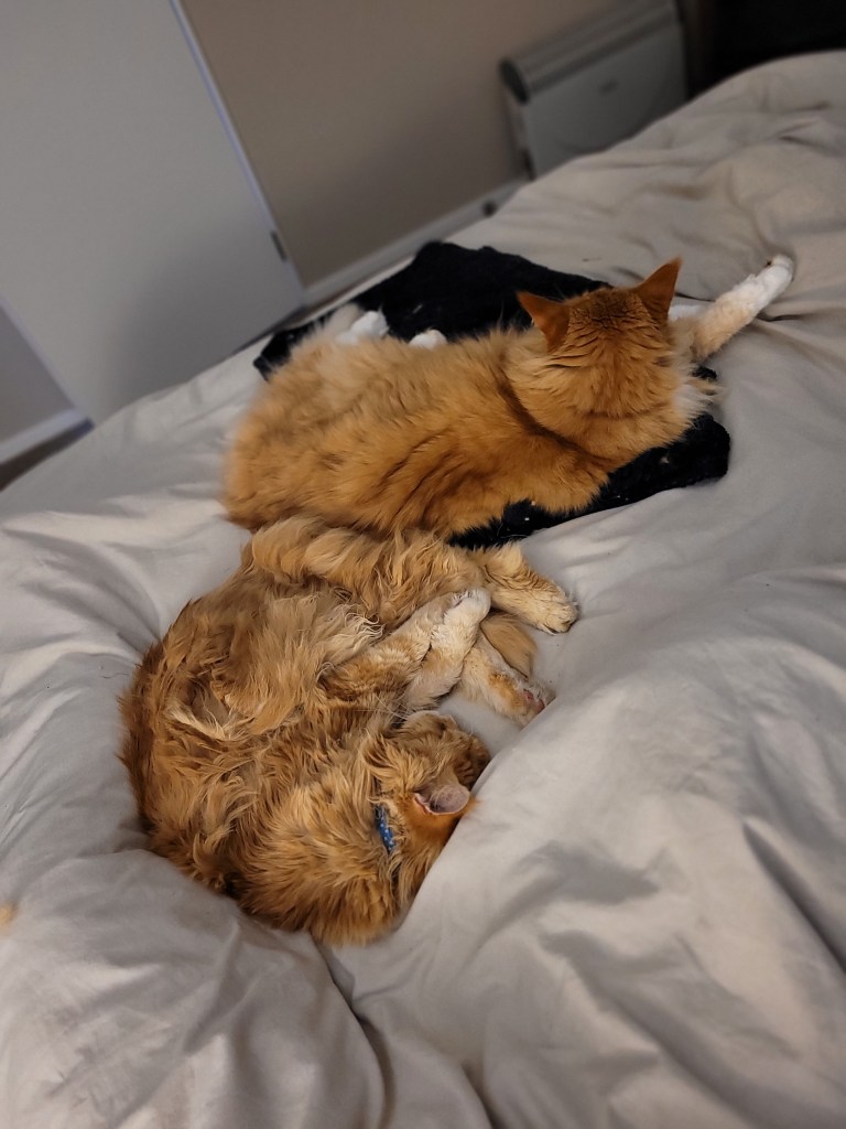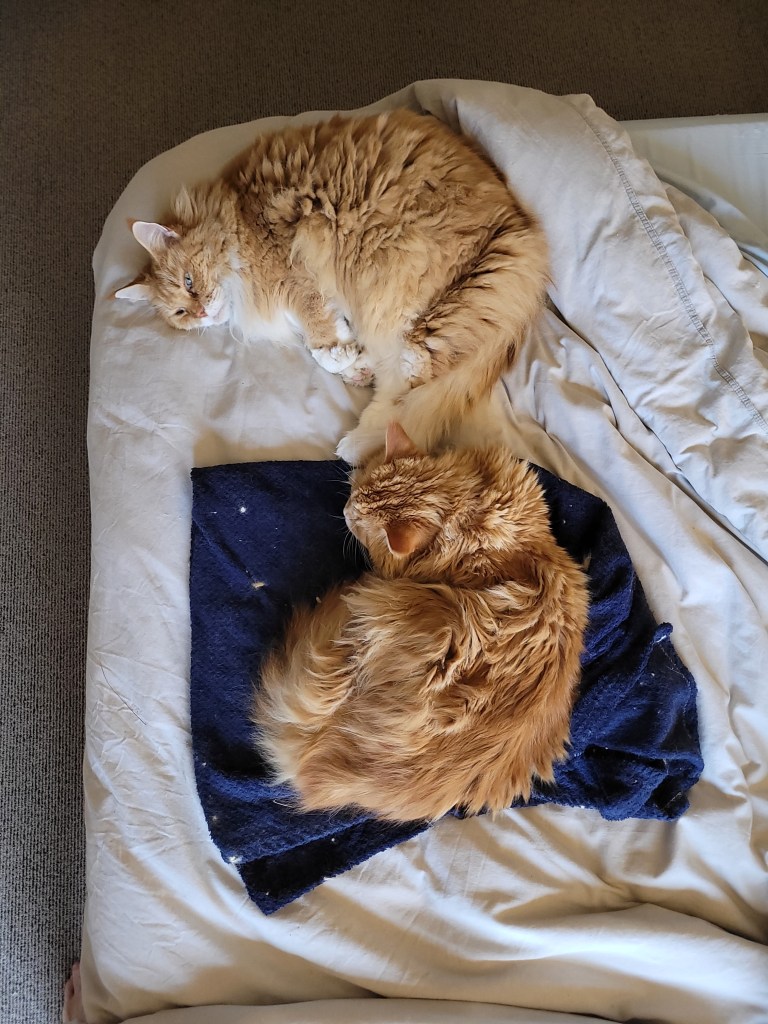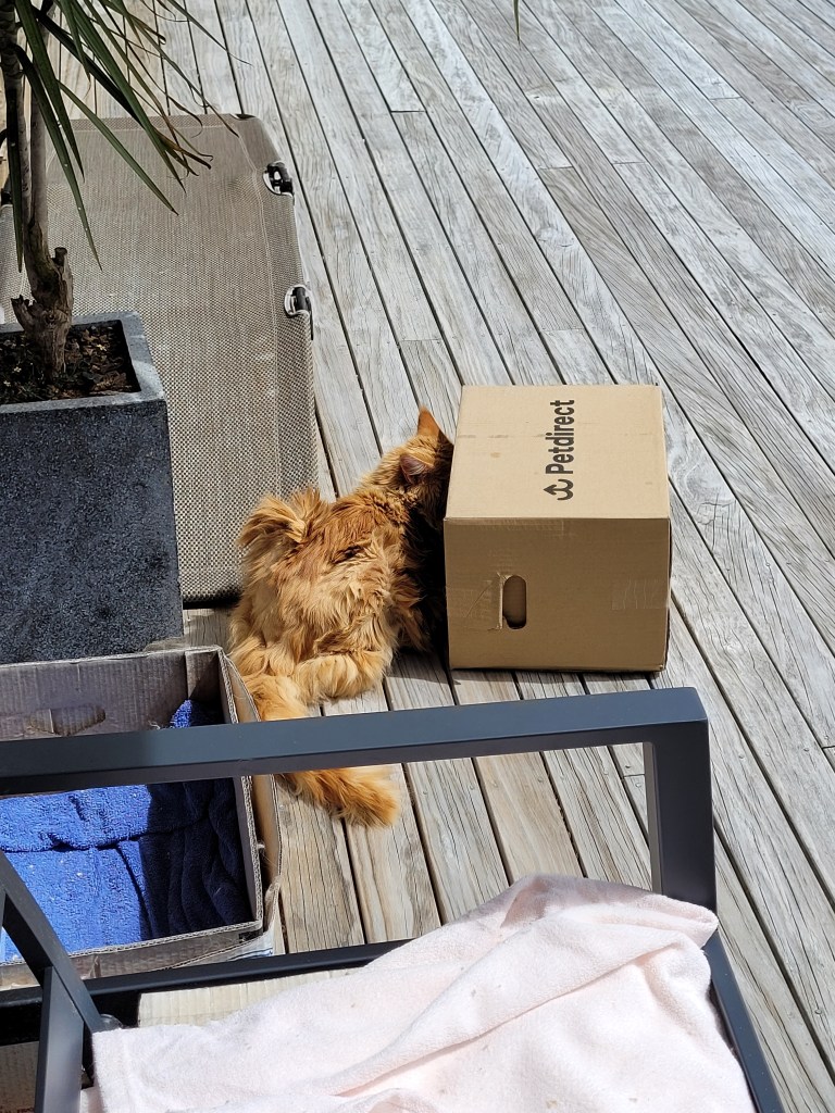 October came and went. Nearly Christmas, etc,etc. It’s warming up here. The kittens are spending more time in the sun although there are still opportunities for snuggling and box-occupation.